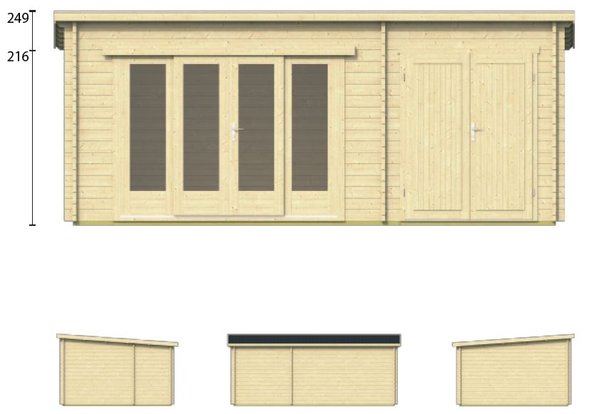 Chalet bois 16+4,8m2 MAGGIE 400x595cm - 44mm - 2 pièces + garage